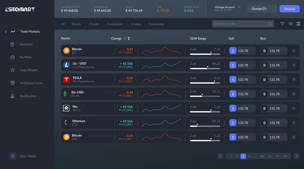 Full trading ecosystem with separate user-facing trading interface and internal admin platform for monitoring, analytics, support, and configuration.